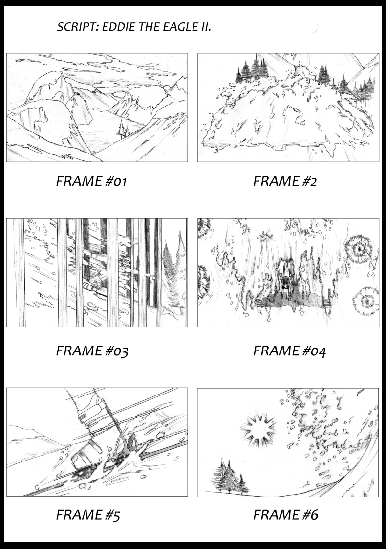 Storyboard for the trailer fo the movie "Eddie the eagle" by Dexter Fletcher. Produced by Create advertising