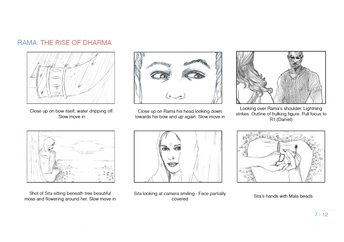 StoryboardRama: The rise of dharma "Rama. The rise of Dharma". Page 01 "Rama. The rise of Dharma". Page 02 Explanation in pencil of the character of the movie Sita Explanation in pencil of the character of the movie Rakshasa 2 Explanation in pencil of the character of the movie Sage VishwamitraCheck the video in this link https://www.youtube.com/watch?v=Mmd4wjNuLs0